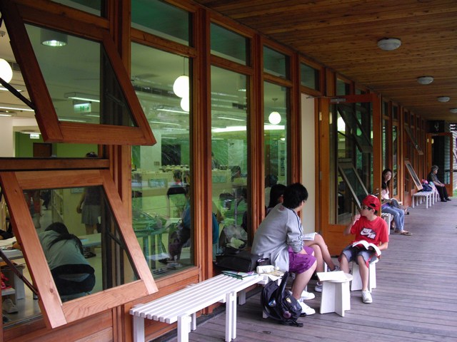 哈哈~~很妙吧!! 進去館內逛了一逛...看到好多學生年紀的年輕人在裡面K書~ 地下室是兒童圖書區,有好多好多的外文圖書可以讓小朋友看..這邊的資源真的蠻豐富的,別以為就這樣而已喔...館內也有提供電腦~無線上網~ 等等的服務...在這裡絕對不比待在誠品差..不過館內比較熱..不像一般書店那樣冷氣吹到皮皮抖~~ 呵呵!